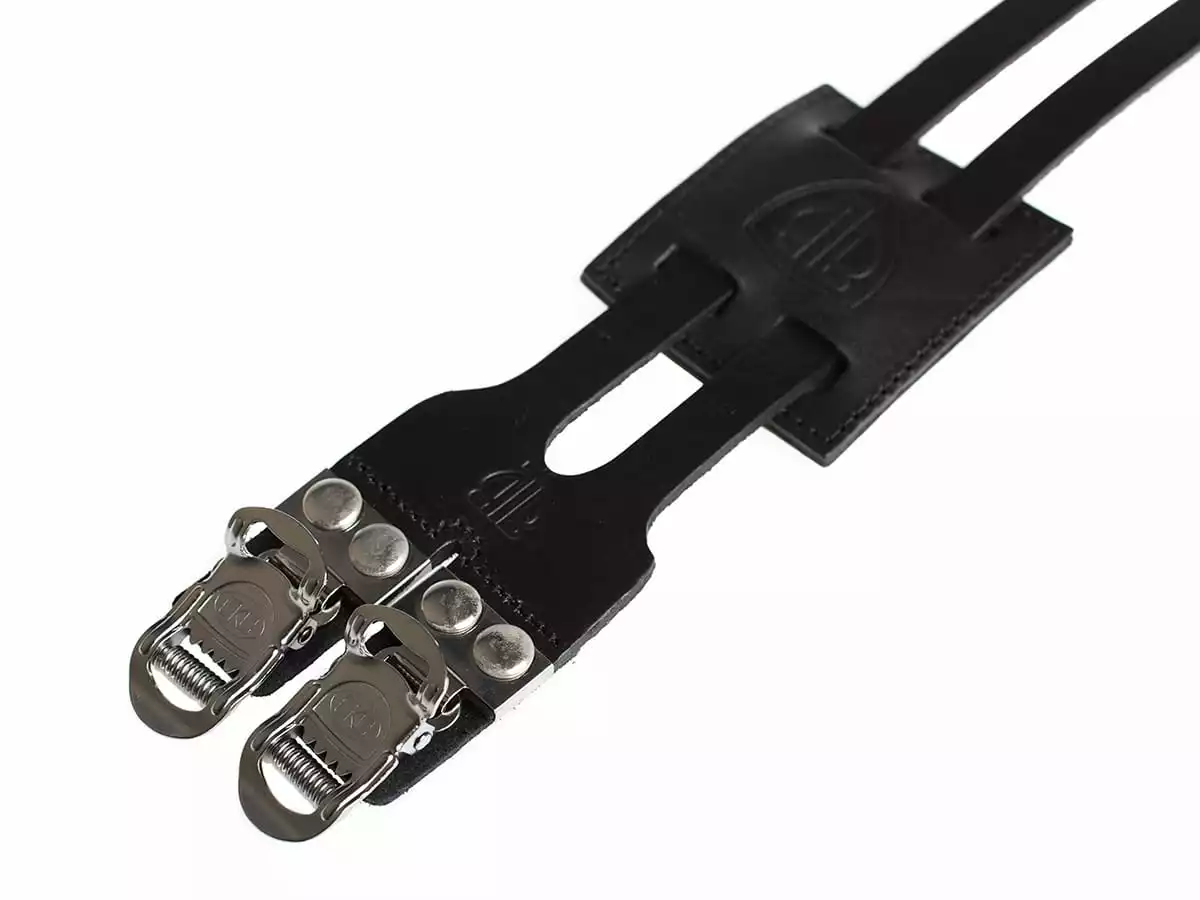 De sterkste riemen van Bricklane. Twee lagen stevig leer zijn aan elkaar gelijmd en extra gestikt. Een extra groot gespstuk verdeelt de druk optimaal, terwijl de onderlaag van leer de schoen beschermt tegen slijtage. Wordt geleverd met de Bricklane lederen patch. Een must-have voor degenen wier pedaalriemen verslijten of scheuren.