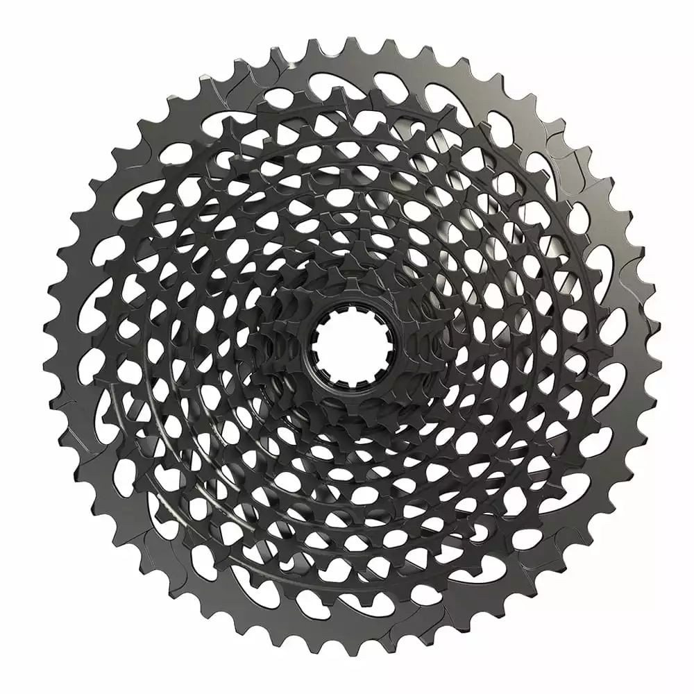 Een snelle blik op de nieuwe X-DOMEâ„¢ Eagleâ„¢ cassette is genoeg: Een voorderailleur is eindelijk overbodig op een mountainbike. Deze cassette, die is ontwikkeld voor onze beproefde XDâ„¢ Driver Body, heeft twaalf tandwielen met tien tot 50 tanden. Met een totale overbrengingsverhouding van 500 procent! Tegelijkertijd is hij aanzienlijk lichter dan tandwielen met twee kettingbladen. Onafhankelijke tests tonen aan: De X-DOMEâ„¢ constructie maakt het de meest torsiestijve cassette op de markt. De nieuwe kenmerken optimaliseren zowel het schakelproces als de kettingspanning.